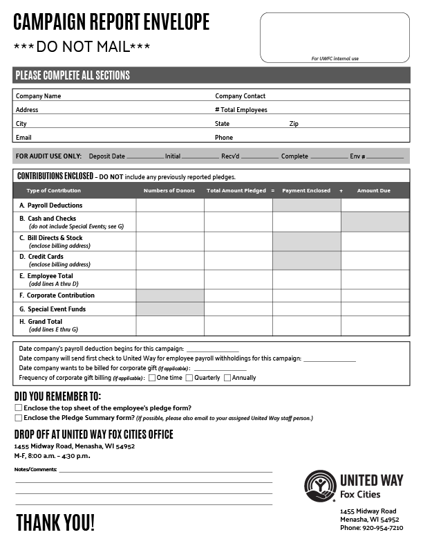 A Workplace Campaign is a partnership between your company, your colleagues, and United Way Fox Cities. These campaigns make it easy to give back through payroll deduction, one-time gifts, or volunteering. Your gift supports more than 100 programs and initiatives that strengthen health, youth opportunity, financial security, and community resiliency across our region.
